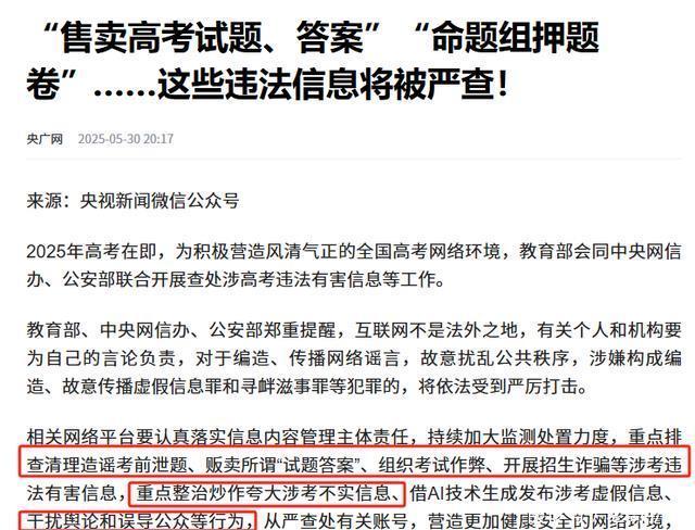更令人咋舌的是,今年5月教育部、网信办、公安部。 刚发布联合整治,教育机构利用高考的重要性,行诈骗、夸大宣传不正之风。 甚至严查“售卖高考试题、答案”、“绝密资料”、“命题组押题卷”等资料行为。