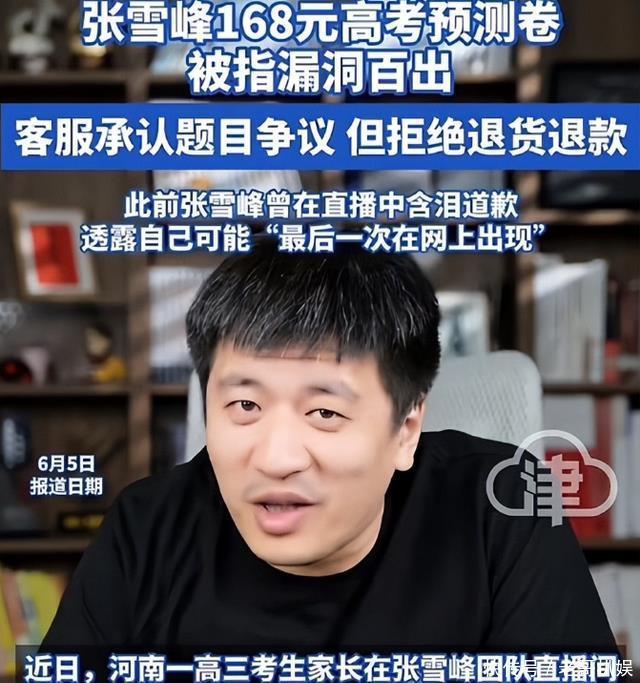 结语:正所谓,成也在嘴,败也在嘴,作为千万级别网红,无数家长心中的高考明灯,张雪峰本该深思熟虑谨言慎行,可为了捞金、博流量,他却多次说出极端言论,如今落得这般下场,也是他咎由自取,丝毫怪不得旁人。 大家对于这件事有什么不同看法,请在评论区留言。 封面新闻——2025年10月22日——张雪峰多平台被封28天后恢复直播,在直播间多次感谢观众 央广网——2023年12月9日——热搜第一!张雪峰回应“文科都是服务业” 鲁中晨报——2025年6月5日——张雪峰直播间168元高考预测卷被指漏洞百出,客服承认题目错误但拒退货退款